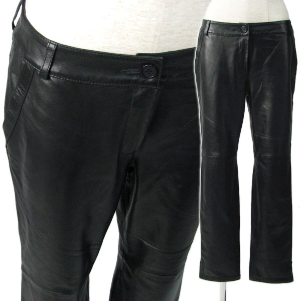 柔らく丈夫なラムレザーはパンツにしても着心地バツグン。 オフィスでも使えるシックなブラックカラーに淡い光沢が映えます。 動きやすく、「デキるオトナの女性」になるならコレ! 表面は滑らかで光沢のあるナッパ加工により、汚れにくいのも特徴。 裾部分にスリットのあるデザインで、さり気ないオシャレを演出しています。 サイズ(約〜cm) ウエスト ヒップ 総丈 股上 股下 わたり幅 裾幅 9号 79 96 85 17.5 68 59 32 商品詳細 クオリティラム 素材の特徴 レザーの中でも柔らかく、しなやかな着心地。 裏地有り(レザーと同系色) 留め具ファスナー1つ、ボタン1つ ポケット左右2箇所 商品写真は実物のカラーにより近づけるために調整してありますが、お客様のご覧になる機種・設定により 実際の商品と画像の色が異なって見える事があります。ご理解いただけますようお願い致します。