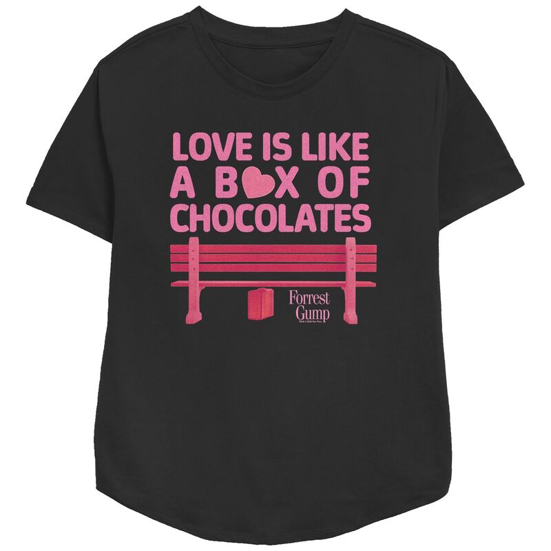 【送料無料】 ライセンス キャラクター レディース Tシャツ トップス Women's Forrest Gump Love Is Like A Box Of Chocolates Relaxed Fit Graphic Tee Black