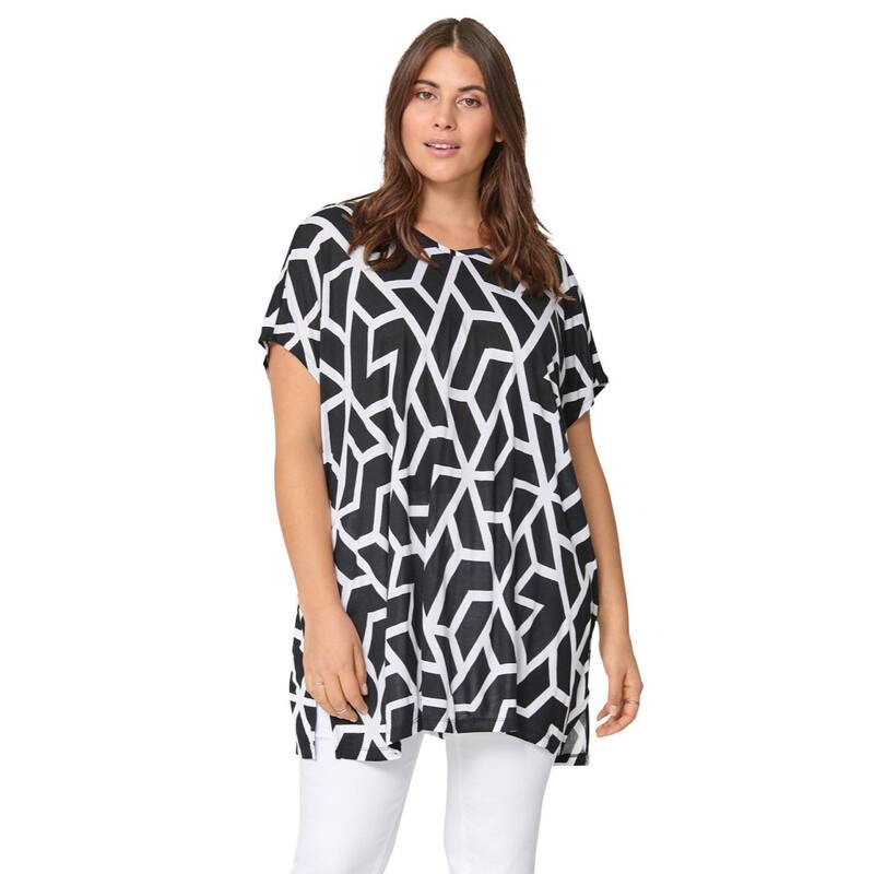 【送料無料】 Ellos レディース Tシャツ トップス Ellos Women's Plus Size Oversized Tunic Black White Abstract