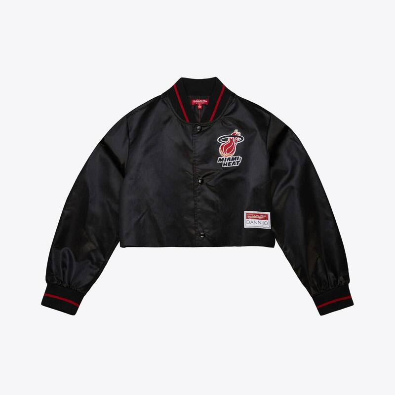【送料無料】 ミッチェル&ネス レディース ジャケット・ブルゾン アウター Women's Mitchell & Ness x DANNIJO Black Miami Heat Cropped Satin Full-Snap Jacket Hea Black