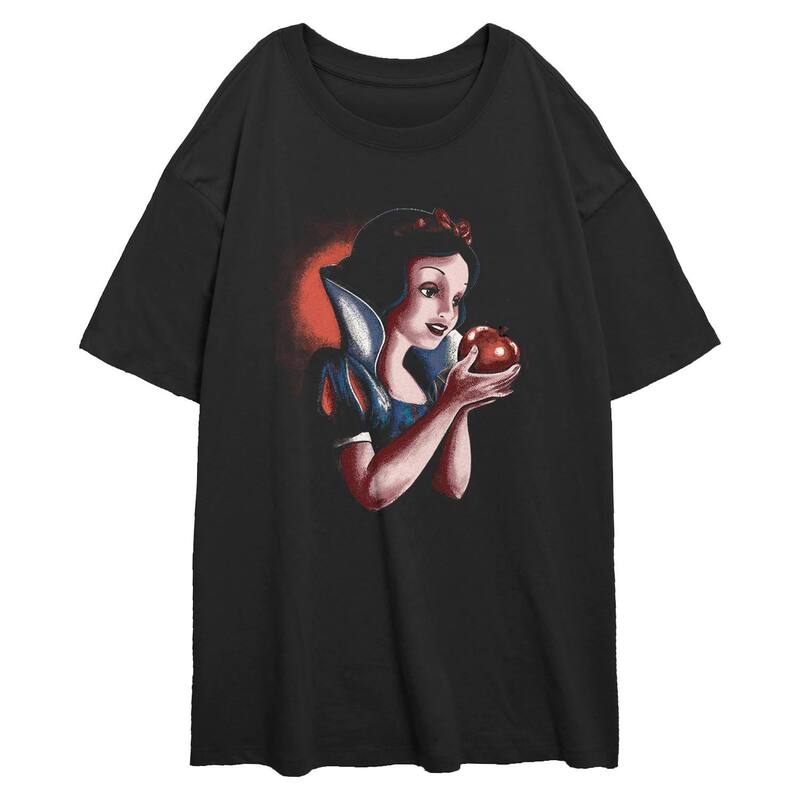 【送料無料】 ディズニー レディース Tシャツ トップス Disney's Snow White And The Seven Dwarfs Ready To Take A Bite Juniors' Oversized Graphic Tee Black