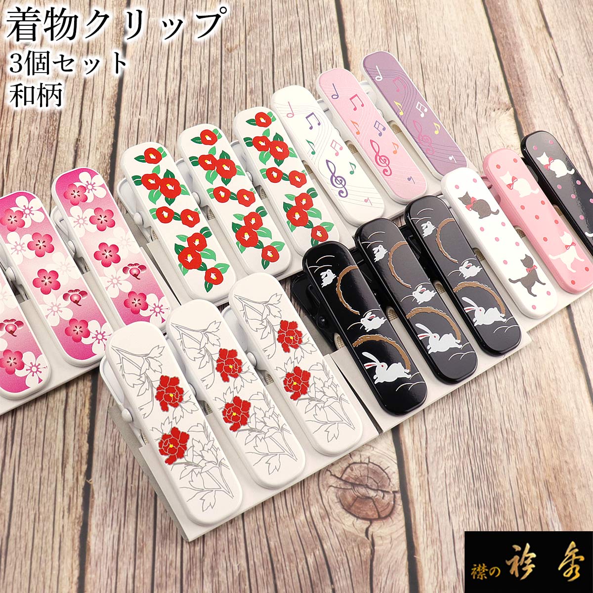 衿秀 公式 着物クリップ 着付けクリップ 和柄 3個セット 送料無料 日本製 和装小物 和小物 えりひで 襟の衿秀 eh tb