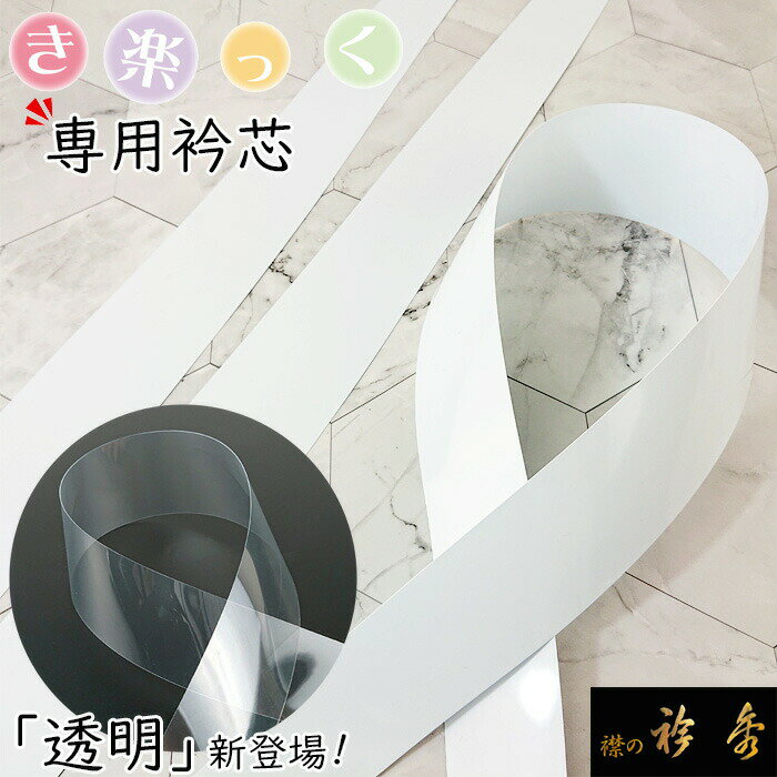 ショップトップはこちら き楽っくはこちら 替え衿はこちら 替え袖はこちらき楽っく替え衿専用の[衿芯]です。 繰り返しの洗濯などにより衿部分のヨレが生じた際、こちらの衿芯を入れてみてください。 衣紋のきれいな曲線をキープします。 入れ方はとっても簡単! 替え衿を広げ、衿の内側になる部分に衿芯を通します。 広げた衿を折り、元の形に戻すだけです。 替え衿に添う形状になっておりますので非常に簡単です。 「白」と「透明」をご用意しました。 絽やレース、薄手の半衿の場合は「透明」の方が透けの影響が少ないです。 冬物は特に透けを気にせずお使いください。 ◆◆◆カラーをお選びください◆◆◆ ↑「白」2本↑ ↑「透明」2本↑ ↑「白」「透明」各1本↑ ※本商品は【2枚セット】です。 素材 塩化ビニール 備考 2本セットです。「白」2本「透明」2本「白」「透明」各1本 こちらの中からお選びいただけます。 ご確認ください 「き楽っく専用」の衿芯です。通常の衿芯とは形状が異なります。 製造元 株式会社 衿秀日本製
