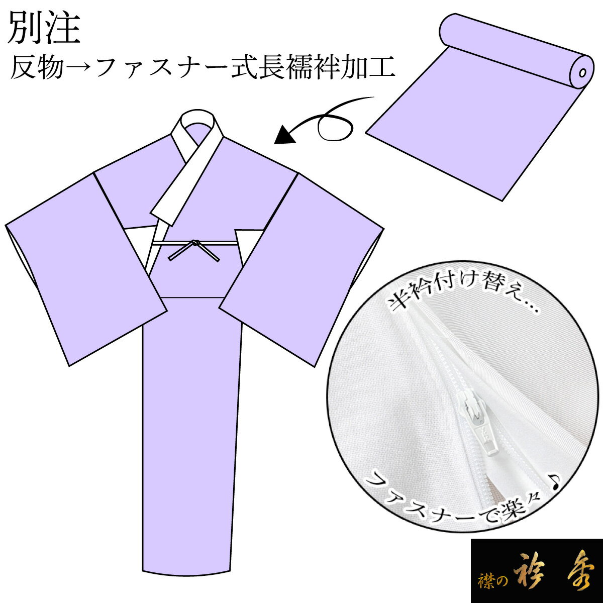 衿秀 公式 別注 替え衿 半衿 加工 かええり 半襟 はんえり ファスナー き楽っく きらっく すなお きものすなお 和装小物 えりひで 襟の衿秀 eh tb