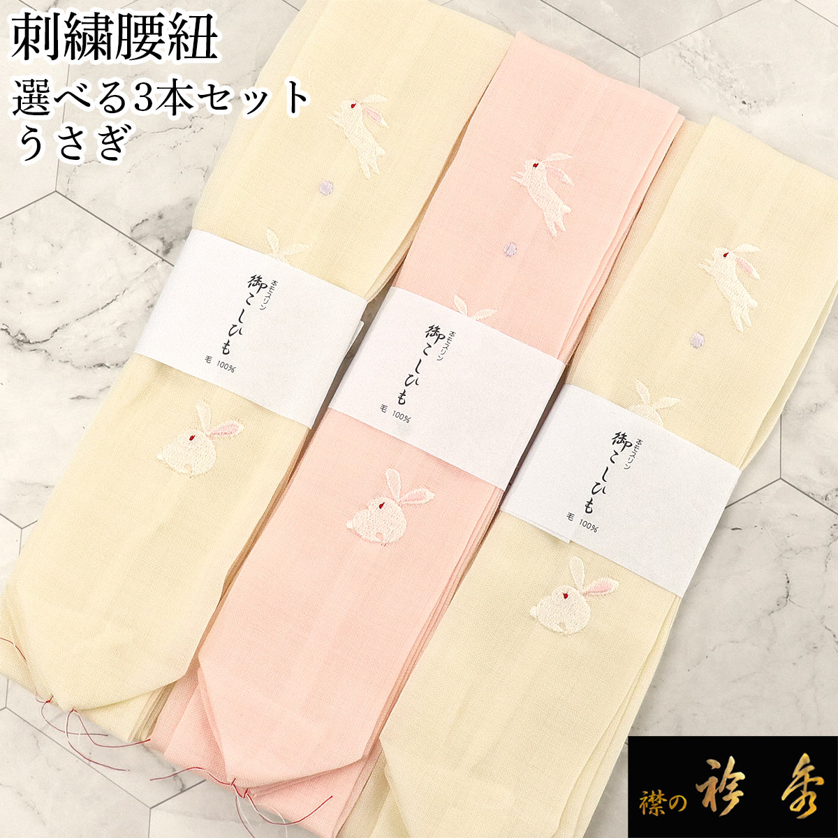 衿秀 公式 腰紐 3本セット 送料無料 うさぎ 兎 刺繍 モスリン 毛 腰ひも こしひも 着物 襦袢 着付け小物 日本製 和装小物 えりひで eh tb