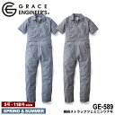 【2点購入で送料無料】 綿麻素材 ストライプ 半袖 つなぎ 作業服 レディース 春夏 GRACE ENGINEER'S グレイスエンジニアーズ GE-585 農業女子 おしゃれ 5号 7号 9号 11号 13号