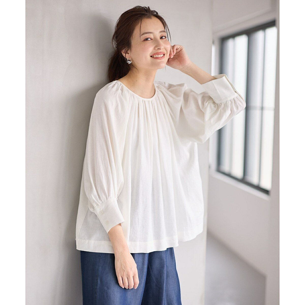 【手洗い可能】ヨーロピアンリネンギャザーブラウス/エニィ(any FAM)