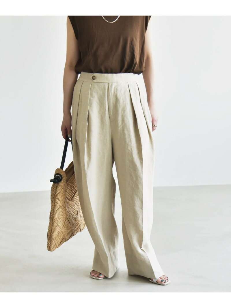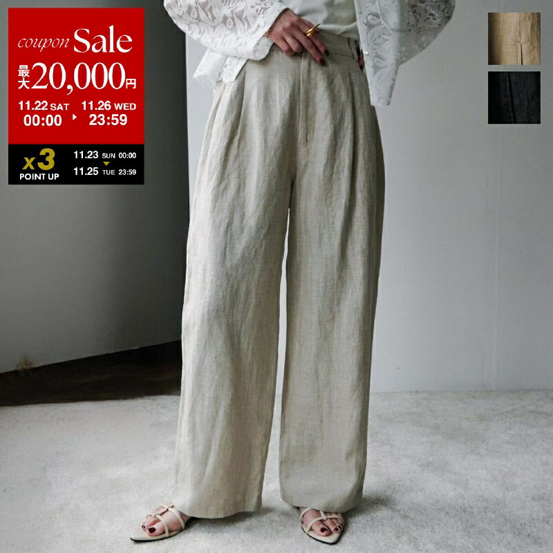 【SALE/50%OFF】quaranciel:<洗濯機可能>ヨーロピアンフラックス リネン タック ワイド パンツ quaranciel シップス パンツ その他のパンツ ブラック ベージュ【RBA_E】【送料無料】[Rakuten Fashion]