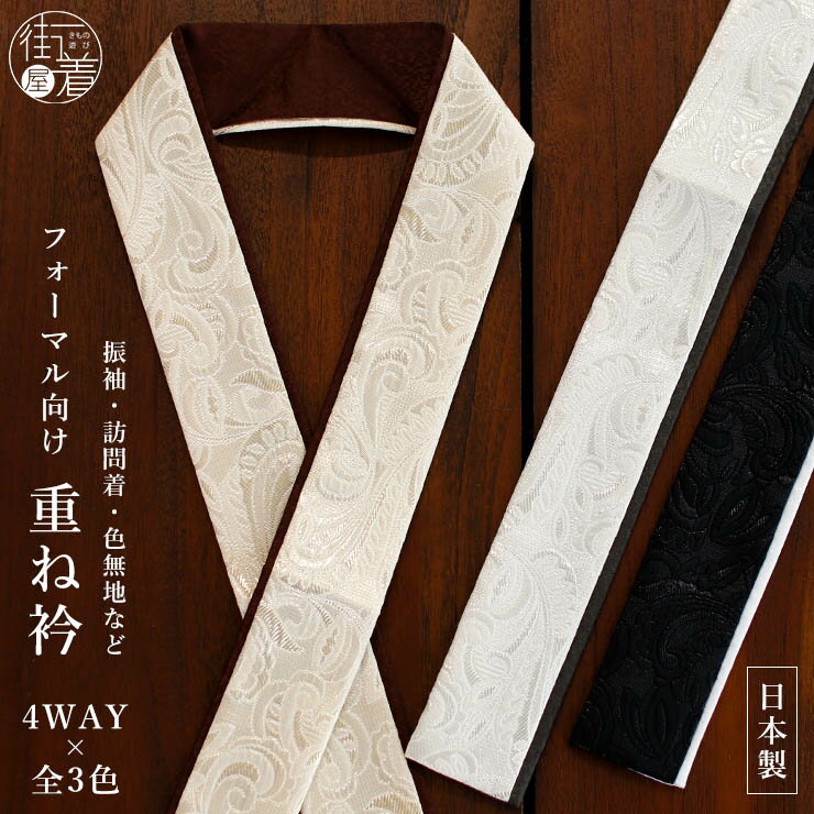 振袖用 [ 重ね衿 ] 4way 伊達衿 ヨーロピアン更紗 × あられ地紋 3色 ポリエステル100% 留めピン付き 半衿 重ね襟 日本製 ジャガード 織 金 銀 黒 茶 グレー 白 訪問着 色無地 留袖 付け下げ 袴 成人式 卒業式 パーティー 結婚式 レディース 着物 きもの 和装 和風館(ma411s)