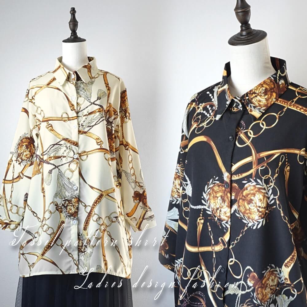 10%オフクーポン 【3連休も発送】 大きいサイズ ヨーロピアン タッセル柄 総柄 ロングシャツ 長袖 トップス ブラウス レトロ ヴィンテージ風 黒 原宿系 韓国 春夏 秋冬 個性的 ダンス衣装 大人 可愛い オーバーサイズ ワイド おしゃれ 送料無料 ブラックフライデー