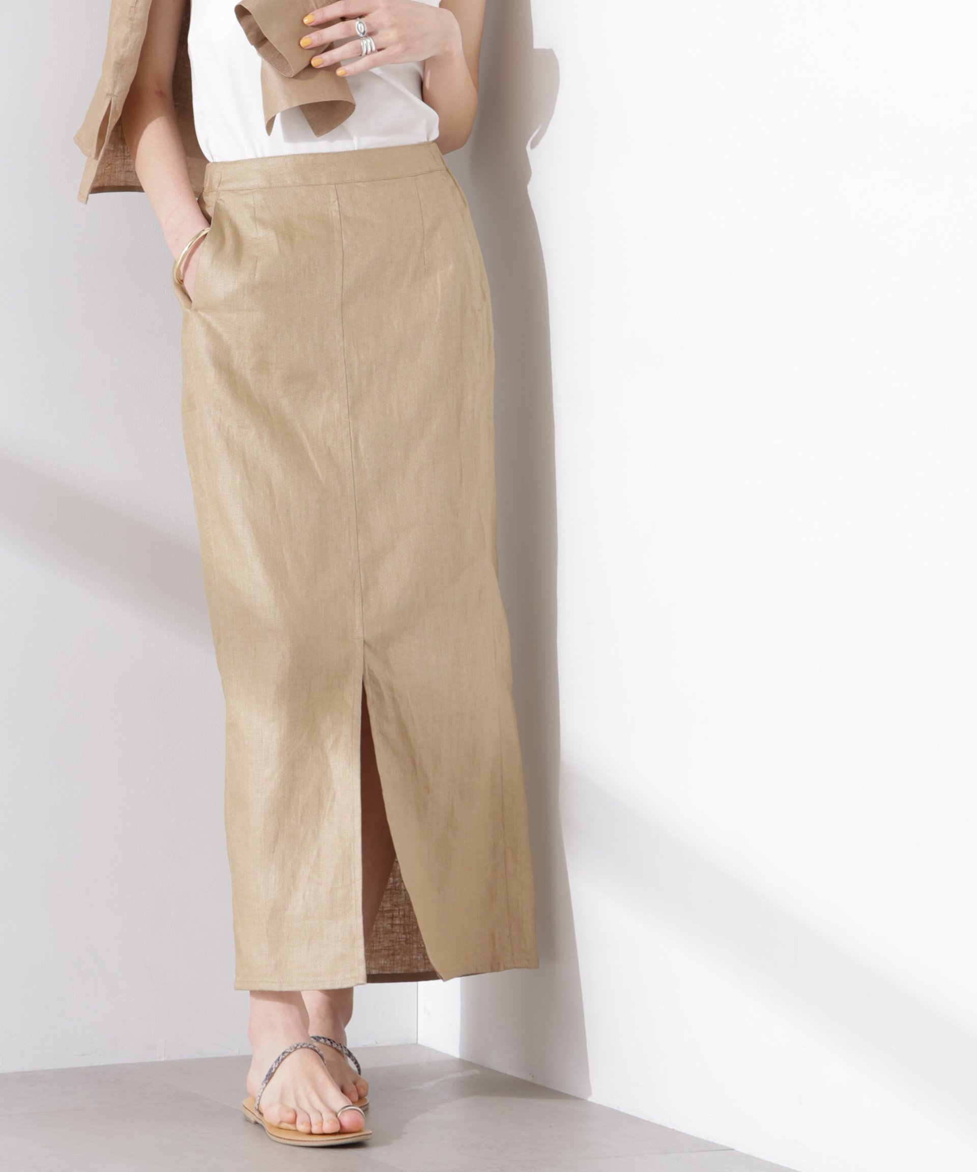 NANO universe(ナノユニバース)ヨーロピアンフラックス サイド切替Iラインスカート(セットアップ可)清涼感のあるリネン素材が暑い夏に最適なスカート【2025 SS】NANO universe(ナノ・ユニバース)涼し気なリネン生地で仕立てたフレアスカート。ウエストゴムで履き心地が良く、きれいめなIラインシルエットでスタイルアップが叶う一枚。サイドに切り替えを入れることによりデザイン性のあるスカートに仕上がりました。■デザイン・上品できれいめなIラインシルエットのスカート・フロントにはやや長めのスリットを入れ歩きやすさ◎・着心地もラクなサイドウエストゴム仕様・長めの着丈ながらも薄手のリネン生地で軽やかな着心地・通勤スタイルにも活躍・裏地付き■素材・清涼感のある40sのリネン生地を使用・チンツ加工を入れ光沢感とハリ感のあるきれいめな仕上げ・手洗いに対応したウォッシャブル素材■カラー展開・お手持ちの洋服に合わせやすいベージュ、ブラウン・デニム見えするトレンド感のあるネイビー■コーディネート・同シリーズのジャケットやシャツとセットアップスタイルがおすすめ・シンプルなカットソーやシャツに合わせるだけも華やかでレディライクなコーデに◎■シリーズ・6695116305 ヨーロピアンフラックス シアージャケット(セットアップ可)・6695120300 ヨーロピアンフラックス シアーシャツ(セットアップ可)■サイズ感・身体のラインを拾い過ぎないサイズ感■取扱方法単独洗いをして下さい。ネットを使用してください。あて布を使用してください。引っかけに、ご注意下さい。柔軟剤は使用しないでください。この製品は、素材の特性上激しい運動や極度な力が加わると、縫い目が開いたり目寄れ(織り糸が滑り、縫目が開く)する性質を持っています。ご着用の際はご注意ください。この商品は、生地の表面に独特な光沢感を醸しだす加工をしています。この加工は永久的なものではなく、着用をくり返すことにより、徐々に光沢感がなくなってきます。雨や汗など水に濡れることにより、光沢感がなくなったり、シミになることがあります。お取扱いの際は取扱い表示をご確認ください。こちらの商品は水や雨に濡れたり、汗による湿気、乾燥状態での摩擦により、薄い色の衣服などに色移りする可能性がございます。予めご了承いただき、ご使用の際にはご注意くださいますようお願い致します。※サンプルにて撮影、採寸を行う為、実際にお届けする商品と仕様やサイズが異なる場合がございます。予約時は生産の都合上、お届け予定時期が前後する場合もございますので、予めご了承下さい。※光の当たり具合や撮影環境により色味が異なる場合がございます。正しい色味はスタジオ画像の色味をご参照ください。model: H168cm 着用サイズ: M型番:669-5130301-040-18 NZ1403【採寸】S:最小ウエスト65cm、最大ウエスト71cm、ヒップ98.8cm、スカート丈89cmM:最小ウエスト68cm、最大ウエスト74cm、ヒップ101.9cm、スカート丈91cm商品のサイズについて【商品詳細】ミャンマー製素材:(表地)麻100%(裏地)ポリエステル100%サイズ:S、M手洗い、ドライクリーニング不可※画面上と実物では多少色具合が異なって見える場合もございます。ご了承ください。商品のカラーについてNANO universe(ナノユニバース)ヨーロピアンフラックス サイド切替Iラインスカート(セットアップ可)清涼感のあるリネン素材が暑い夏に最適なスカート【2025 SS】NANO universe(ナノ・ユニバース)涼し気なリネン生地で仕立てたフレアスカート。ウエストゴムで履き心地が良く、きれいめなIラインシルエットでスタイルアップが叶う一枚。サイドに切り替えを入れることによりデザイン性のあるスカートに仕上がりました。■デザイン・上品できれいめなIラインシルエットのスカート・フロントにはやや長めのスリットを入れ歩きやすさ◎・着心地もラクなサイドウエストゴム仕様・長めの着丈ながらも薄手のリネン生地で軽やかな着心地・通勤スタイルにも活躍・裏地付き■素材・清涼感のある40sのリネン生地を使用・チンツ加工を入れ光沢感とハリ感のあるきれいめな仕上げ・手洗いに対応したウォッシャブル素材■カラー展開・お手持ちの洋服に合わせやすいベージュ、ブラウン・デニム見えするトレンド感のあるネイビー■コーディネート・同シリーズのジャケットやシャツとセットアップスタイルがおすすめ・シンプルなカットソーやシャツに合わせるだけも華やかでレディライクなコーデに◎■シリーズ・6695116305 ヨーロピアンフラックス シアージャケット(セットアップ可)・6695120300 ヨーロピアンフラックス シアーシャツ(セットアップ可)■サイズ感・身体のラインを拾い過ぎないサイズ感■取扱方法単独洗いをして下さい。ネットを使用してください。あて布を使用してください。引っかけに、ご注意下さい。柔軟剤は使用しないでください。この製品は、素材の特性上激しい運動や極度な力が加わると、縫い目が開いたり目寄れ(織り糸が滑り