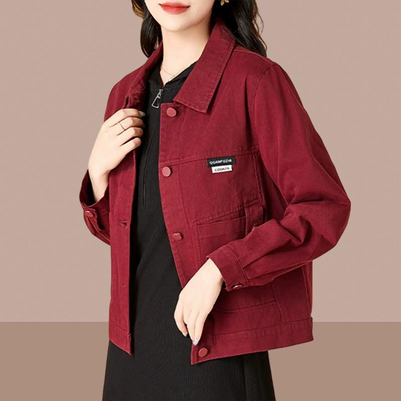 デニムジャケット シャツ ワイドシルエット ワークウェア カジュアル トップス 春秋冬 長袖 レッド レディース 大きいサイズ ファッション ショート ヨーロピアン