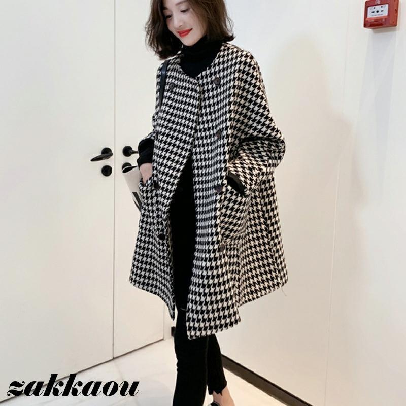 千鳥格子 チェック柄コート レディース ミドル丈 秋冬新作 ヨーロピアングッズ ラウンドネック チェック柄 ウールコート