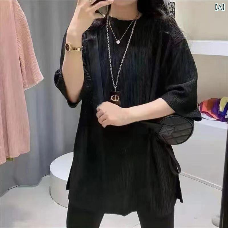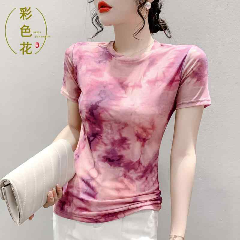 トップス シャツ レディース マザーズ 婦人服 普段使い ヨーロピアンハロー 染め メッシュ Tシャツ 夏 女性用 ラウンドネック スリム 半袖