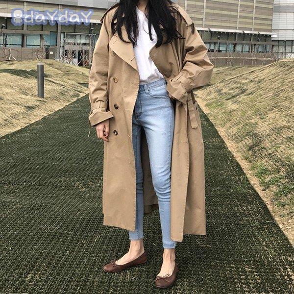 トレンチコート レディース ロングコート 通勤 体型カバー 二色 ヨーロピアンカジュアル オーバーサイズ 秋着 コート レトロ