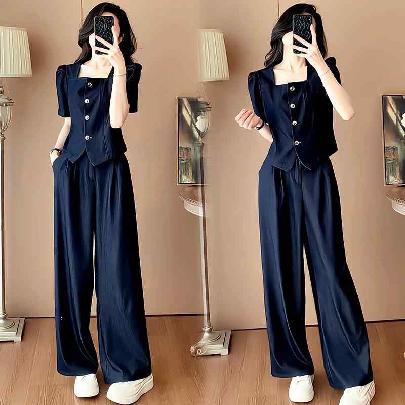 秋コーデ レディース ファッション 女性用 スタイリッシュ カジュアル スポーツ スーツ 大きいサイズ ハイエンド ヨーロピアンスタイル スクエアネック トップス ワイドレッグ パンツ ツーピース