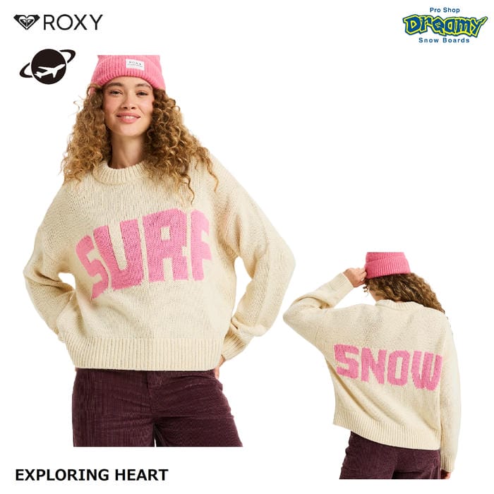 ROXY EXPLORING HEART ERJSW03674 セーター クルーネック ドロップショルダー ゆったりシルエットミドルゲージ 編み込み リブ仕様 TEC0 ロゴ ロキシー 正規品