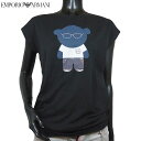 エンポリオアルマーニ EMPORIO ARMAN レディース トップス Tシャツ 半袖 ロゴ サングラスベアー/バックロゴプリント付Tシャツ サングラス熊 サングラスクマ 黒ブラック 3Y2T5B 2JCQZ 0999 71S (R36720) 【送料無料】【smtb-TK】