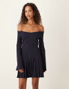 エイソス レディース トップス ワンピース ASOS DESIGN long sleeve pleated skirt mini dress in deep navy