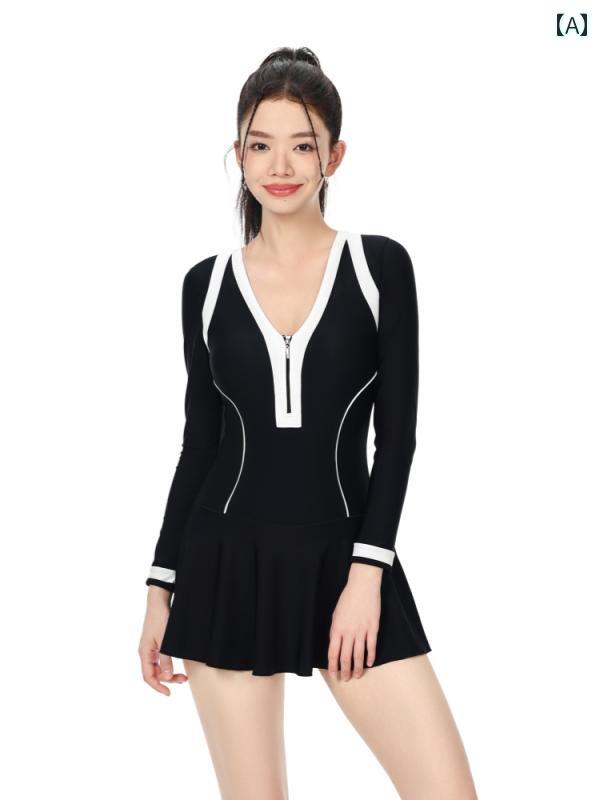 水着 レディース 体型カバー 女性用 黒の 高級 温泉 水着 ワンピース 長袖 肌を カバー して 痩せる 海辺の 日焼け防止 胸 パッド 固定