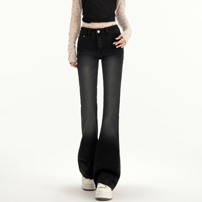 春 コーデ レディース ファッション オシャレ アイテム カワイイ コーデ シンプル きれい ナチュラル 上品カジュアル 用 アメリカン レトロ ブーツ カット ジーンズ ローウエスト 伸縮性 ストレッチ ストレッチ スリムフィット ナロー フィット ホース シュー フレアパンツ