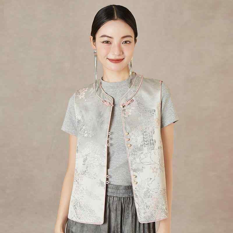 ベスト レディース 改良 軽やか 新チャイナ風 ジャガード織り 高級感 エスニック風 春秋 メッシュ素材 ホルターネック ウェーブ襟 上品 エレガント ジレ