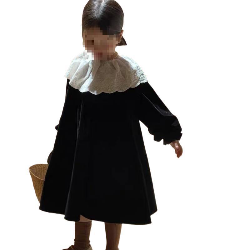 ワンピース 女の子 キッズ レトロ かわいい ヘップバーン風 大きな襟 コーデュロイ 長袖 春秋