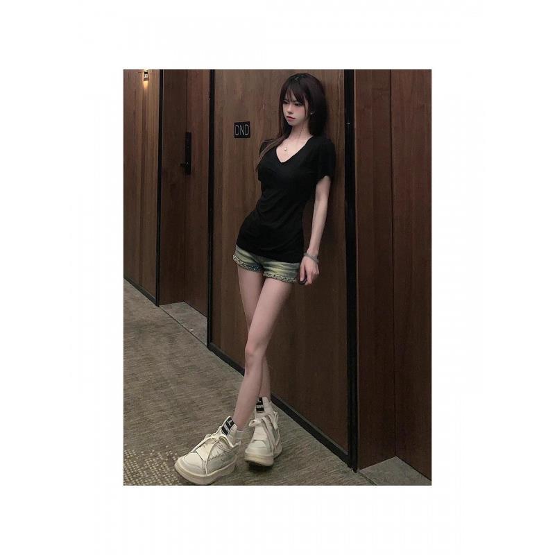 ・素材: ポリエステル繊維、その他・柄: 無地・スタイル: その他・袖丈: 半袖、長袖・フィット: スリム・着丈: ミドル丈(50cm~65cm)・ネックライン: Vネック・袖: レギュラー・ディテール: リブ・カラー: ブラック、ホワイト、グレー・サイズ: S、M、L、XL・テイスト: セクシー・カテゴリ: Tシャツ・主素材の含有量: 90%~95%