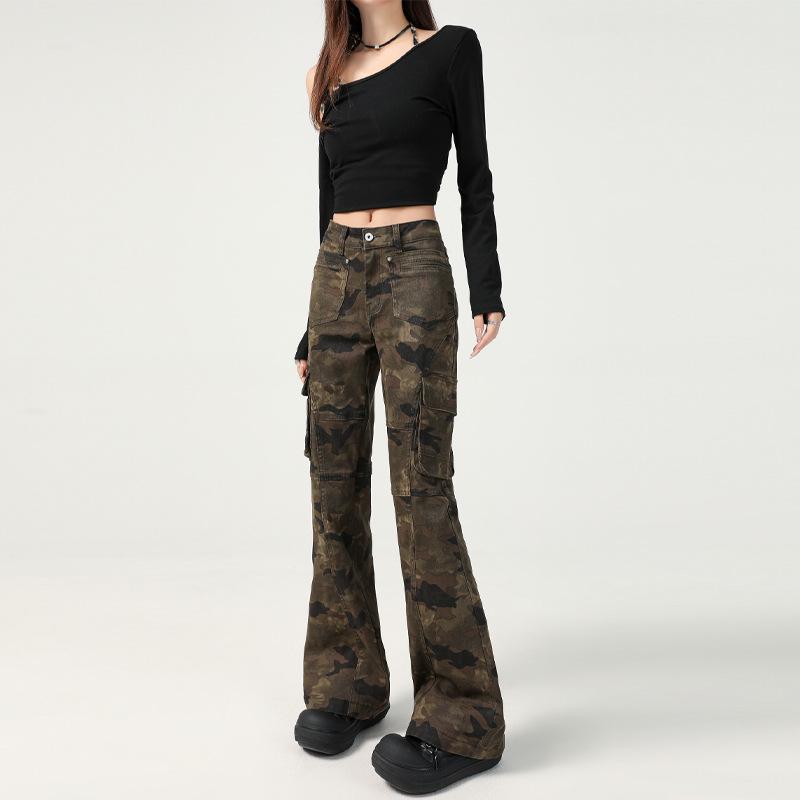 ・素材: 綿弾性デニム・主素材: 綿70-80%、スパンデックス30%以下・スタイル: ワークパンツ・パンツ丈: フルレングス・ウエスト: ハイウエスト・厚さ: 普通・加工: ダメージ加工、ウォッシュ加工、ジッパー、ボタン・カラー: 迷彩柄(フルレングス)、迷彩柄(ロング)・サイズ: XS、S、M、L、XL・スタイル: ストリートファッション・ストレッチ: 中程度・パンツタイプ: フレアジーンズ・種類: ジーンズ