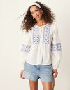 セセ レディース トップス シャツ 刺繍 CeCe Women's Short Sleeve Open Tie Front Embroidered Top Blue Pearl パール