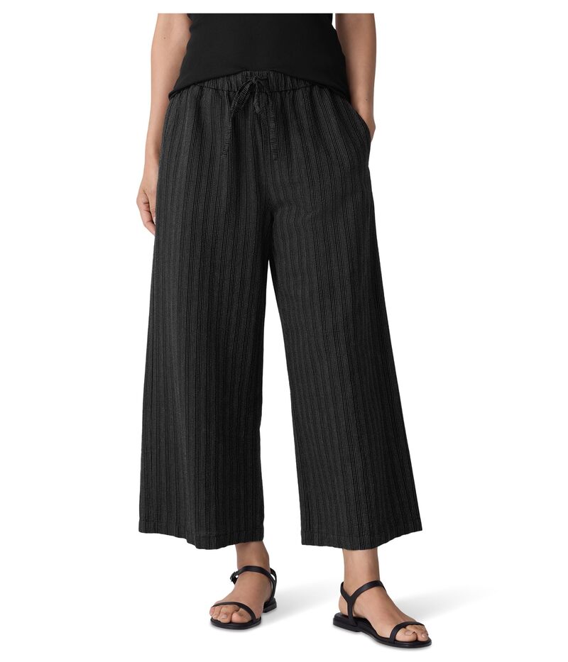 エイリーンフィッシャー レディース ボトムス カジュアルパンツ コットン クロップド Eileen Fisher Cotton Blend Stripe Stitch Wide Cropped Pant Black ブラック