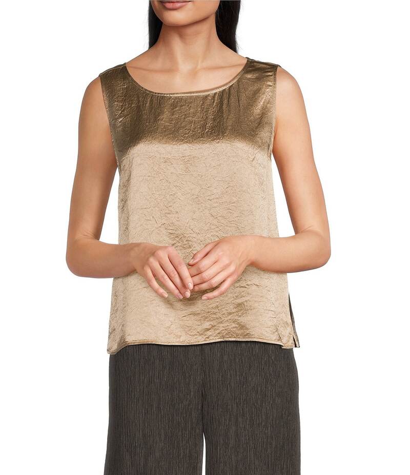 エイリーンフィッシャー レディース トップス シャツ サテン ノースリーブ Eileen Fisher Textured Satin Ballet Neck Sleeveless Short Shell Tank Biscuit
