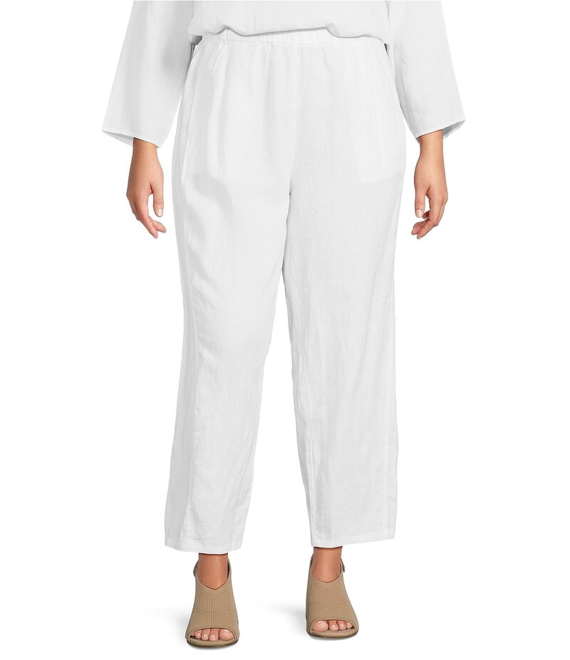 エイリーンフィッシャー レディース ボトムス カジュアルパンツ プラスサイズ プリーツ パンツ アンクル リネン Eileen Fisher Plus Size Organic Linen Pleated Lantern Ankle Pants White ホワイト