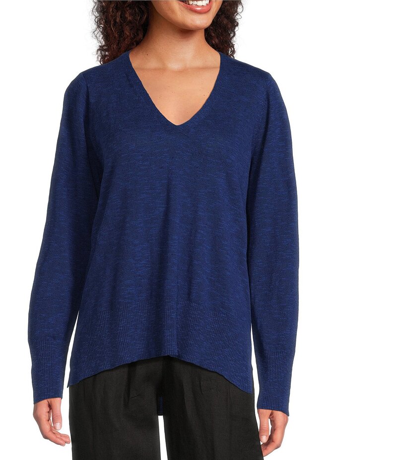 エイリーンフィッシャー レディース アウター ニット・セーター Vネック セーター コットン リネン Eileen Fisher Organic Linen Cotton Blend V-Neck Long Sleeve Sweater Deep Dive
