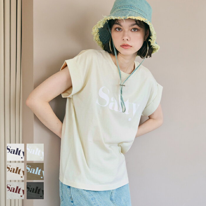 Tシャツ レディース フレンチスリーブ ロゴ プリント 英字 袖ロールアップ コットン生地 クルーネック ミディアム丈 半袖 メール便可 24ss coca コカ