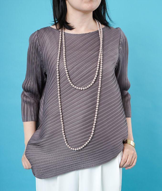 Details 華やかでゴージャス感のある大人の女性のためのプリーツトップス。 細かなプリーツが上品さを感じさせ、なかなかないアシンメトリーなデザインが目を引きます。 ゆったりシルエットで体のラインを拾わないので、少し汗ばむ季節でもさらっと着こなせます。 ボトムスはキレイ目でお呼ばれスタイルにも、カジュアルにデニムで日常使いでも活躍してくれます。 シンプルな無地柄なので光物やおおぶりのアクセサリーと相性抜群です♪ ※縦に伸びるプリーツ加工のため、平置きと着用でサイズが変わりますので予めご了承ください。 メール便 メール便 〇 サイズ 着丈:74cm 肩幅:34cm 袖丈:41cm 袖口:18cm アームホール:44cm 襟幅:26cm バスト:100-120cm 裾幅:81cm 【モデル身長】160cm 当店のサイズ表記について その他 【素材】 ポリエステル 【生産国】 中国 【伸縮性】 あり 【透け感】 あり 【裏地】 なし 【ポケット】 なし 【商品番号】kss011 ※ご注意点※ ・ページ下の※はじめにご確認ください※をご確認の上ご注文ください。