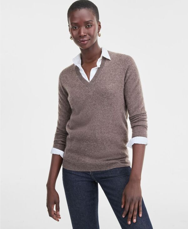 チャータークラブ レディース ニット&セーター アウター 100% Cashmere Women's V-Neck Long-Sleeve Sweater, PXS-XXL, Macy's Exclusive Frosted Mocha Heather