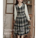 ジャンパースカートとシャツ2点セットアップ 学生服 制服風 フォーマスーツ 中学生 大学生 カジュアル 入学式 卒業式 黒 ミモレ丈ワンピース 長袖 シャツ 可愛い 森ガール系 白 Vネック スカート レディース 女子 文芸系 ゴスロリ ワンピース ブラック 謝恩会 お誕生日