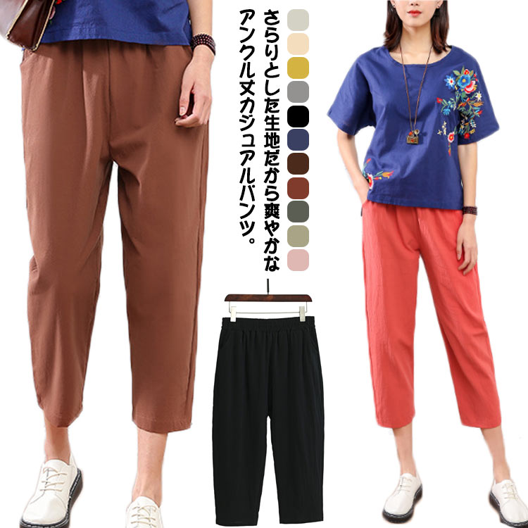 夏の定番!アンクルパンツ レディース 全11色 春夏 テーパード カジュアルパンツ 送料無料 9分丈 サルエルパンツ コットン 綿 ボトムス 楽チン ウエストゴム ルームウエア 部屋着 ゆったり 体型カバー 大きサイズ
