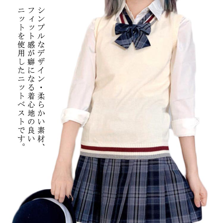 スクールニット ライン入り ニットベスト Vネック JK制服 ベスト 女子 制服 学生服 ニット レディース 入学 通学 男子高生 女子高生 中学生 高校生 学校 ニット 秋冬 春夏 トップス ノースリーブ ベージュ 送料無料