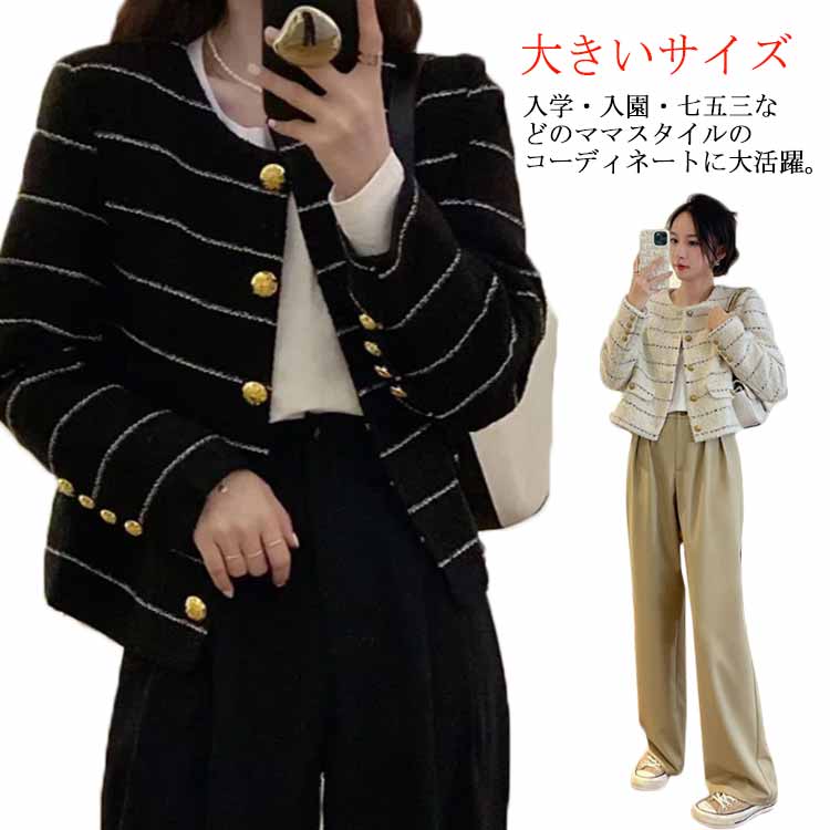 ツイードジャケット ジャケット レディース ノーカラージャケット ツイード ツィード ツウィード フォーマルジャケット 大人 20代 30代 40代 50代 女性 ママ 服装 仕事 入学式 七五三 お宮参り 卒業式 大きいサイズ 送料無料