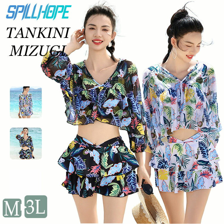 ママ水着 花柄 総柄 ボヘミアン おしゃれ 可愛い 三点セット ビキニ 露出控え 水着 タンキニ 韓国 レディース 水着 3点セット 体型カバー ビキニ お腹 お尻 セパレート パッド付き プール 海 旅行 大きいサイズ ファッション 温泉 修学旅行 ゴールデンウイーク スカート 派手