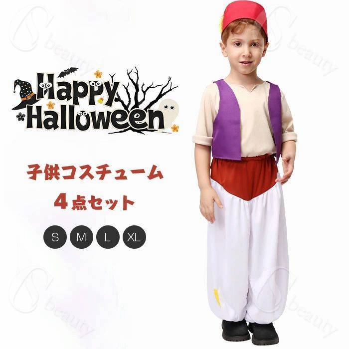 ハロウィン 衣装 子供 男の子 4点セット アラジン コスチューム コスプレ キッズ 子ども アラビアン 王子様 ハロウィンコスチューム ベビー コスチューム 仮装 衣装 可愛い 文化祭 演出服 子供の日 プレゼント ギフト