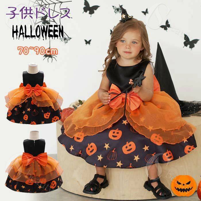 ハロウィン ベビードレス コスチューム 魔女 女の子 ハロウィン 仮装 ドレス 子供 女の子 カボチャ 魔女 仮装 70/80/90cm プリンセスドレス 子供ドレス ワンピース ハロウィン仮装 halloween 結婚式 セレモニードレス 赤ちゃん 女児 結婚式 入園式 お宮参り パーティー