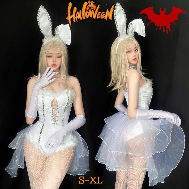 新登場 ベビードール ハロウィン クリスマス セクシー バニーガール エロい オールインワン 超過激 コスチューム セット 夜店 DSダンス バー 仮装 パーティー 大人女性用 レースボディスーツ 網タイツ 5点セット ホワイト S-XL