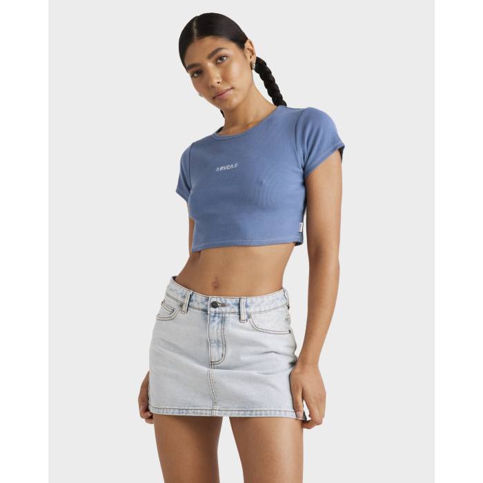 ルーカ Rvca 【 Womens Half Baby Crop Top Womens Coronet Blue 】 レディース ハーフ Crop クロップ レディースファッション トップス Tシャツ カットソー レディース 青色 ブルー