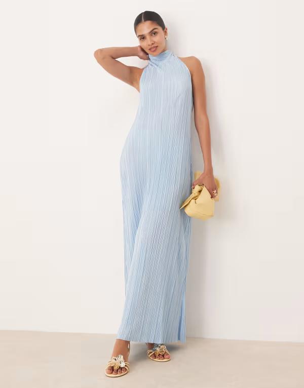 エイソス レディース トップス ワンピース マキシワンピース マキシ ホルター ASOS DESIGN plisse halter tie maxi dress in baby Baby blue ブルー