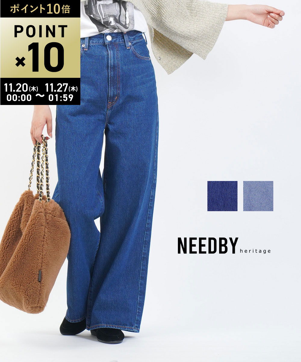【11/20限定10%クーポン&ポイント10倍】ニードバイ ヘリテージ NEEDBY heritage デニム パンツ デニムパンツ ワイド ストレート ジーンズ ハイウエスト 脚長 コットン ハイライズ 大人 日本製・N1C100637-2942402(レディース)