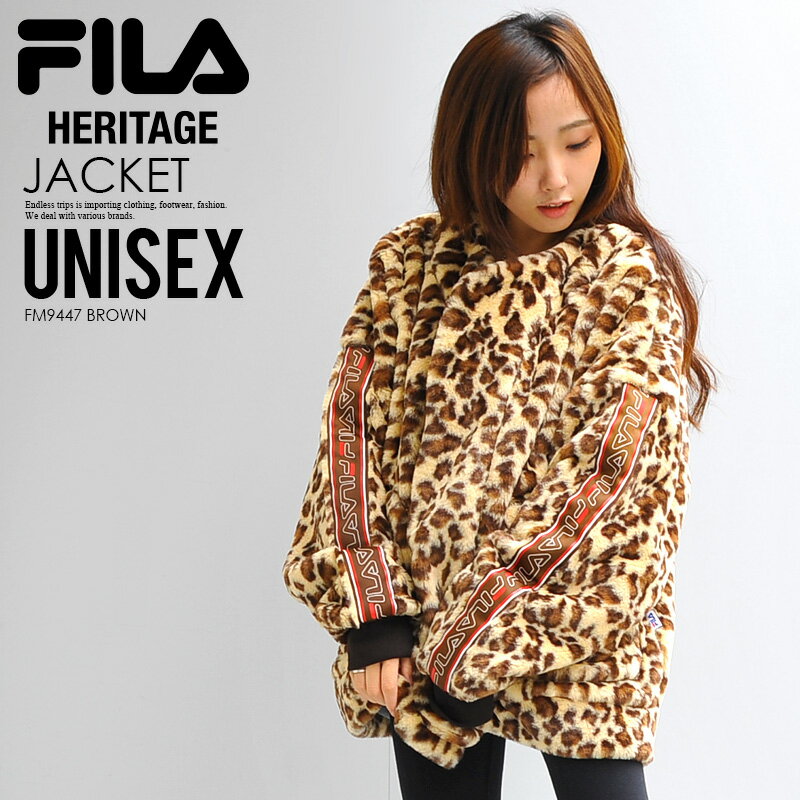 【エントリーでポイント10倍!】【入手困難! ユニセックス 】 FILA HERITAGE (フィラ ヘリテージ) LEOPARD FAKE FUR V-NECK ZIP JACKET (レオパード フェイクファー Vネック ジップ ジャケット) アウター メンズ レディース ひょう柄 ファー (ブラウン) FM9447 BROWN dpd-4