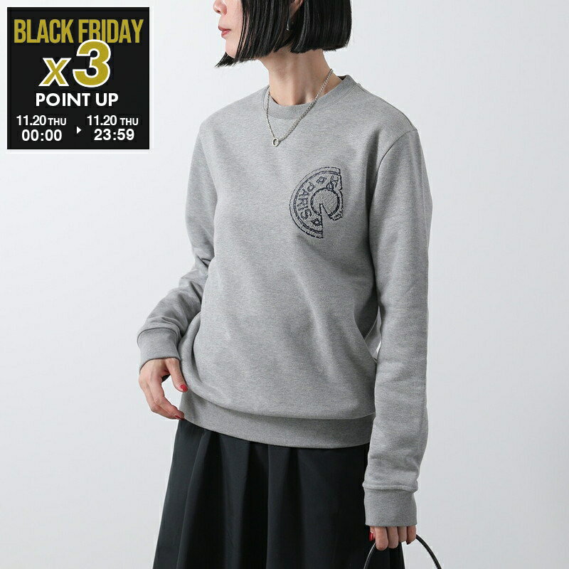 HERMES エルメス トレーナー クルー・ド・セル H557831HA レディース メンズ スウェット 長袖 クルーネック コットン ロゴ 刺繍 グレー